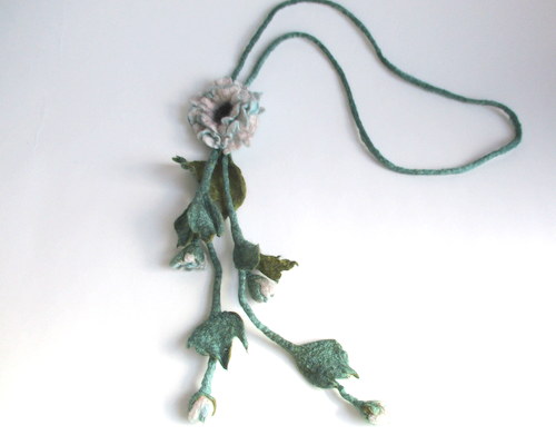 コードにきつく留められているため、お花をスライドさせることはできませんが、後ろでしばるなど、調節して、首元にチョーカー風にしたり、位置を変える事で雰囲気も変えられます。