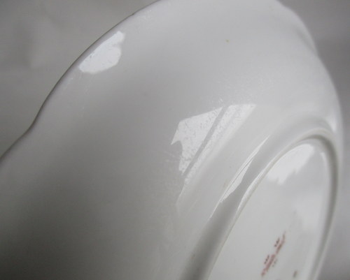 | カップ内側にも前述の細かい傷やクモリのほかに点や色素の付着、また、写真で写し難いですが、若干の変色もあります。 | |