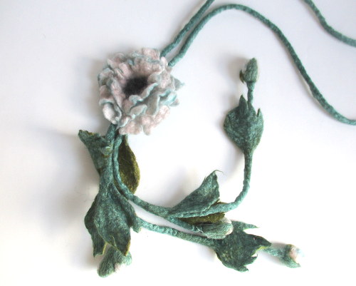 コードにきつく留められているため、お花をスライドさせることはできませんが、後ろでしばるなど、調節して、首元にチョーカー風にしたり、位置を変える事で雰囲気も変えられます。