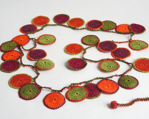 丸いモチーフと、モチーフの色に合わせてビーズも2色使いなのがかわいいです