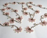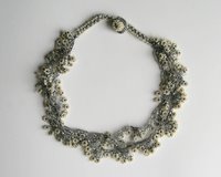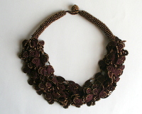 Patricia は、クロシェ(かぎ針編み)のアクセサリーを作り出しているデザイナーで、その洗練されたデザインとクオリティの高い技術から生み出された彼女の作品は、スイス国内外で、紹介されています。 Patricia は、装飾を学んだ後、国際赤十字社の一員として15年にわたり、諸外国でいろいろな任務を果たしてきたという経験の持ち主でもあり、その間、中東の女性達との運命的な出会いが、彼女にアイデアをもたらし、その出会いとシルクロードが現在の創作活動の基盤となっています。 2000年にスイスに戻った Patricia は、最初、縁のある国々からの装飾品を扱うショップを、ジュネーブにオープンさせますが、その後、シルクロードでもたらされた、創作とデザインという最初の情熱に立ち返り、2006年に自分のブランドを立ち上げました。 彼女は、現在も古くからの伝統を守りながら暮らしている、トルコの女性達と一緒に仕事をしていて、その人々の自立へも貢献しています。 近年、残念ながら、Patriciaが、スイスとともに基盤としているトルコを中心に、オリジナルの存在感とは違うものの、彼女のデザインのコピー製品がみられるようになってきました。ここで紹介しているPtriciaの作品は、モチーフを含め、すべて彼女のオリジナルデザインで、トルコの女性たちとのフェアトレードにより生まれたものです。 |