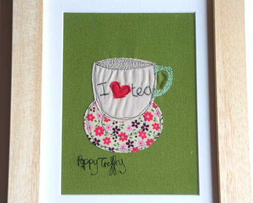 ミシン、フリーハンドで施されたアップリケと刺繍のスモールピクチャー♪