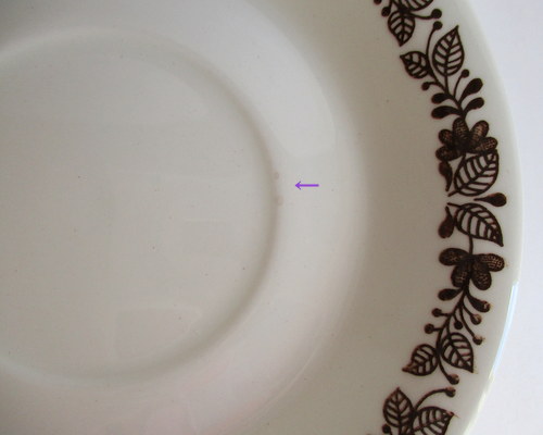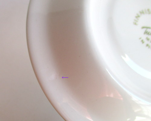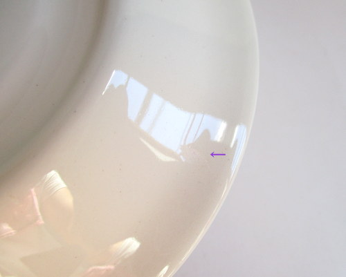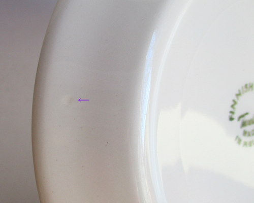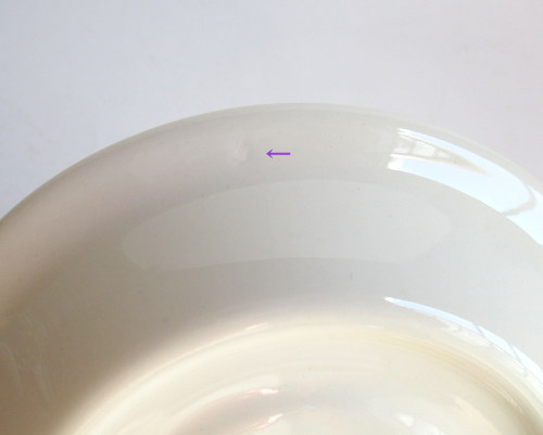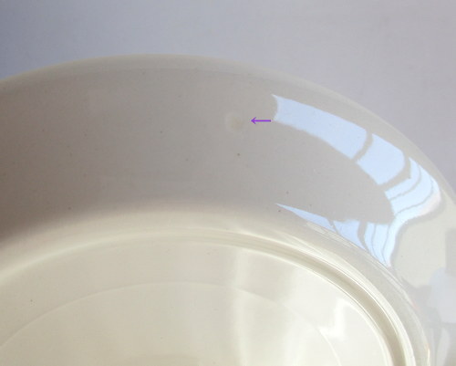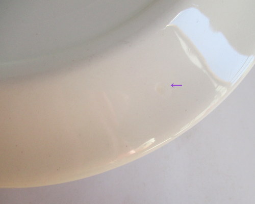 | 以下3枚の写真、焼成時の支柱痕と思われる釉薬のムラが見られます。 | |
