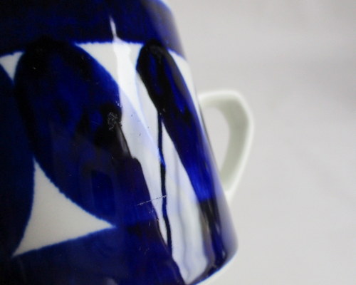 | ソーサーとカップについて、ツヤ感のない部分について、説明しており、詳細は不明ですが、これまで見た、コバルトで彩色されたものに、珍しくないように思います。 | |