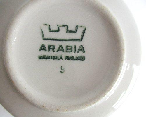 フィンランドARABIA製のカップ&ソーサー。 フォルムGoran Back、デコレーションRaija UosikkinenによるSotkaシリーズです。 コバルトブルーで、大胆にハンドペイントされたデザインが温かみを感じます!また、個体によって、カラーの濃淡やパターンが微妙に違いがあるのも魅力となっています♪ 1970年前後 カップ直径:約6.2cm カップ高さ:約6.7cm ソーサー直径:約12.0cm 写真で説明している部分がありますが、珍しいものではなく、普通に置いてみる分には、目立ちません。ヒビ・カケ等なく、全体的には、つややかで、良好なヴィンテージコンディションです! ※比較的、すぐ気づくようなもののみ、説明でお知らせしています。古いものに珍しくないものとして、写真で説明していない、よく見たときにわかるような、小さな点や、釉薬のムラなどについては、ご了承ください。 |