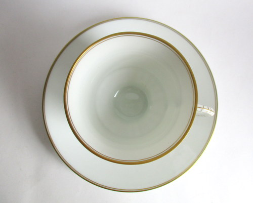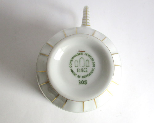 デンマークBing & Grondahl Copenhagen製、Offenbachのカップ&ソーサー。 洗練されたデザインと陶器の質感がとても素敵です! 1950年代 カップ直径:約7.4cm カップ高さ:約7.2cm ソーサー直径:約13.5cm 写真で説明している部分がありますが、ヒビ・カケ等なく、使用感のない、とても良好なヴィンテージコンディションです。 ※比較的、すぐ気づくようなもののみ、説明でお知らせしています。古いものに珍しくないものとして、写真で説明していない、よく見たときにわかるような、小さな点や、釉薬のムラなどについては、ご了承ください。 Vintageメインページはこちら |