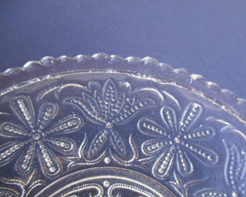 スウェーデンFaglavik製ガラスプレート。 112年前のアンティークです! Damaskusとよばれるモデル。 フィンランドNuutajarviのApilaなどもこのモデルの影響を受けているのかな?と思わせるようなデザインです。 フチや気泡、ザラツキなど、古いガラスのラフな部分が、アンティークとしての味が感じられ、とても素敵です! 1912年 直径:約14.8p 写真でご覧いただけるとおり、光に透かしてみると、色々ラフな部分が見られます。普通においてみる分にはそれほど目立ちませんし、写真でみるより、透明感もあります。112年前のものということを考慮した上で、全体的には、良好なアンティークコンディションです。 気泡などは、古いガラス製品のものとしてご了承ください。 Vintageメインページはこちら |