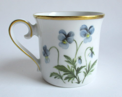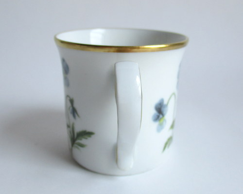 ドイツEschenbach製カップ&ソーサー。 経緯は不明ですが、ドイツのメーカーがスウェーデンの地方の花をモチーフに作ったものです。 Angermanland地方:サンシキスミレ 年代不明 ※ディーラーさんの情報ですと、1970-80年代と思われるとのことでした。 カップ直径(口):約6.5cm カップ高さ:約6.2cm ソーサー直径:約12.0cm ヒビ・カケ等なく、保管上の最小限のスクラッチだけで、全体的には、とても良好なヴィンテージコンディションです。 ※比較的、すぐ気づくようなもののみ、説明でお知らせしています。古いものに珍しくないものとして、写真で説明していない、よく見たときにわかるような、小さな点や、釉薬のムラなどについては、ご了承ください。 Vintageメインページはこちら |