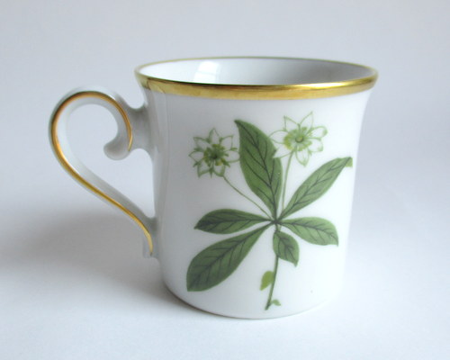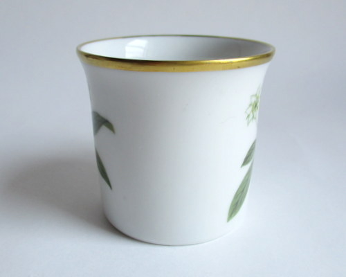 ドイツEschenbach製カップ&ソーサー。 経緯は不明ですが、ドイツのメーカーがスウェーデンの地方の花をモチーフに作ったものです。 Varmland地方:ツマトリソウ 年代不明 ※ディーラーさんの情報ですと、1970-80年代と思われるとのことでした。 カップ直径(口):約6.5cm カップ高さ:約6.2cm ソーサー直径:約12.0cm 写真で説明している部分がありますが、ヒビ・カケ等なく、保管上の最小限のスクラッチだけで、全体的には、良好なヴィンテージコンディションです。 ※比較的、すぐ気づくようなもののみ、説明でお知らせしています。古いものに珍しくないものとして、写真で説明していない、よく見たときにわかるような、小さな点や、釉薬のムラなどについては、ご了承ください。 Vintageメインページはこちら |