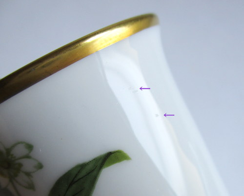 | 矢印のあたりに、表面の釉薬が少し削れている部分があります。 | |