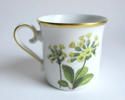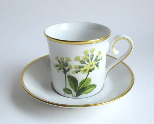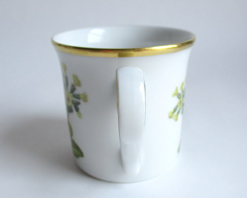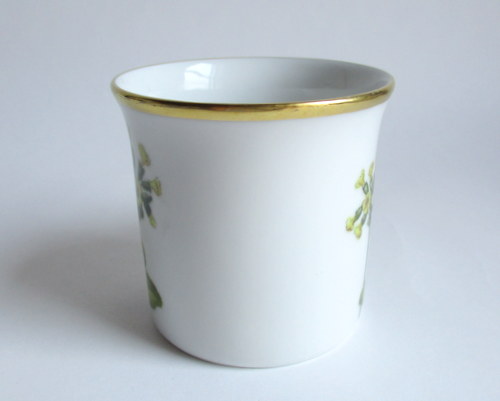 ドイツEschenbach製カップ&ソーサー。 経緯は不明ですが、ドイツのメーカーがスウェーデンの地方の花をモチーフに作ったものです。 Narke地方:黄花九輪桜 年代不明 ※ディーラーさんの情報ですと、1970-80年代と思われるとのことでした。 カップ直径(口):約6.5cm カップ高さ:約6.2cm ソーサー直径:約12.0cm ヒビ・カケ等なく、保管上の最小限のスクラッチだけで、全体的には、とても良好なヴィンテージコンディションです。 ※比較的、すぐ気づくようなもののみ、説明でお知らせしています。古いものに珍しくないものとして、写真で説明していない、よく見たときにわかるような、小さな点や、釉薬のムラなどについては、ご了承ください。 Vintageメインページはこちら |