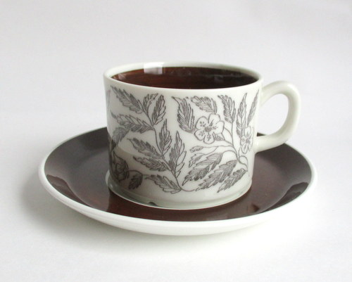スウェーデンGEFLE製のカップ&ソーサー。 Berit Ternellデザインの、Fontanaシリーズです。 線で描かれたお花と葉っぱがとても素敵です! 1970年代 カップの直径(口):7.0cm カップの高さ:5.4cm ソーサーの直径:13.0cm 写真で説明している部分がありますが、この時代のものに珍しくありません。全体的には、とても良好なヴィンテージコンディションです。 ※比較的、すぐ気づくようなもののみ、説明でお知らせしています。古いものに珍しくないものとして、写真で説明していない、よく見たときにわかるような、小さな点や、釉薬のムラなどについては、ご了承ください。 Vintageメインページはこちら |