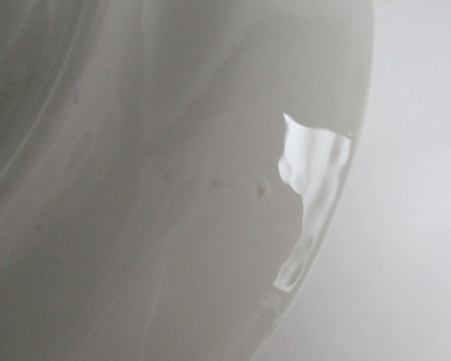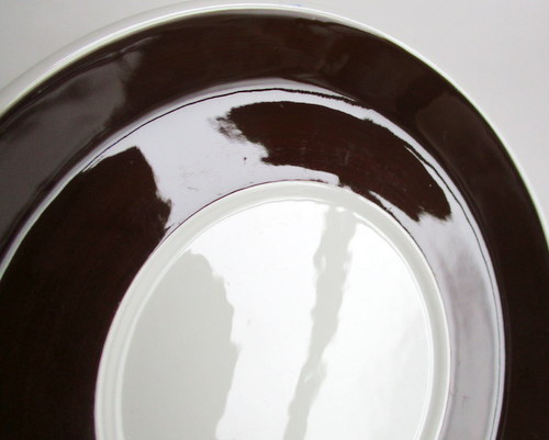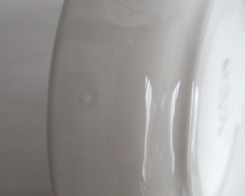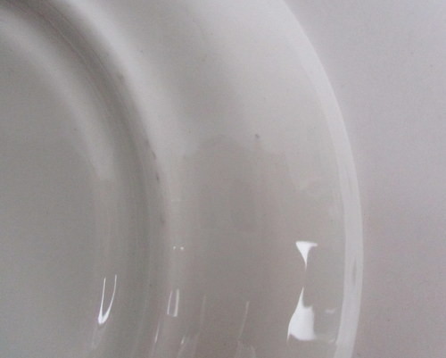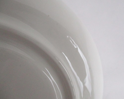 | 以下3枚の写真のように、釉薬のムラが見られますが、丸いものは、焼成時の支柱痕です。 | |