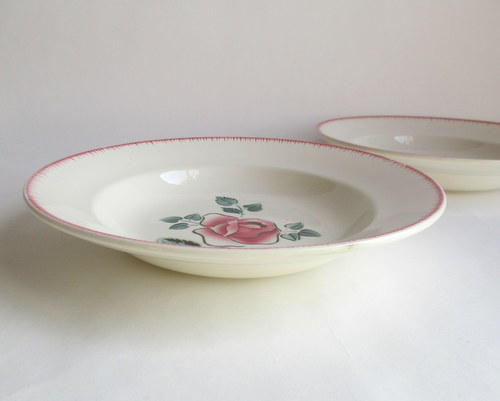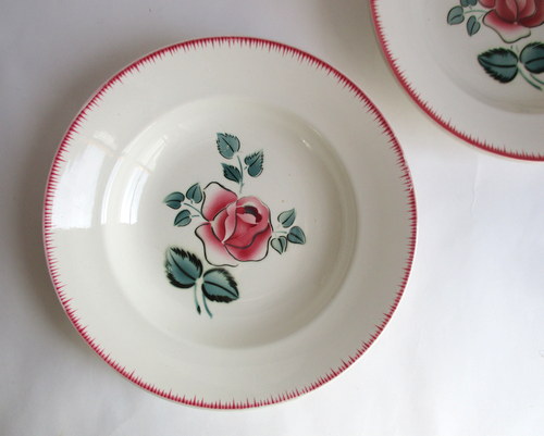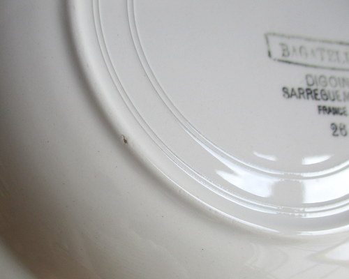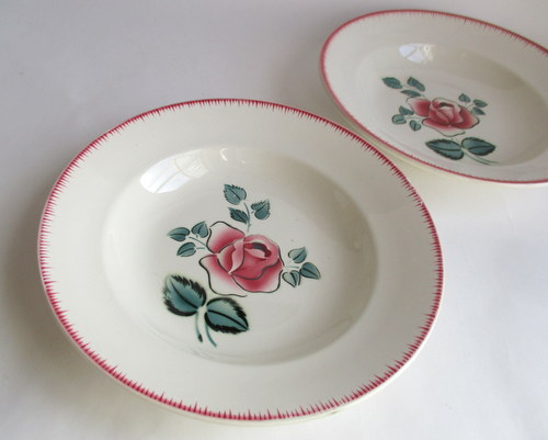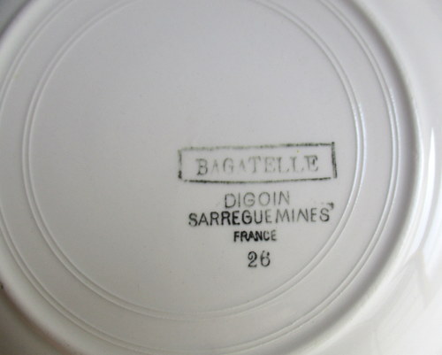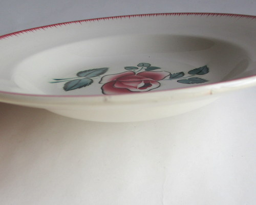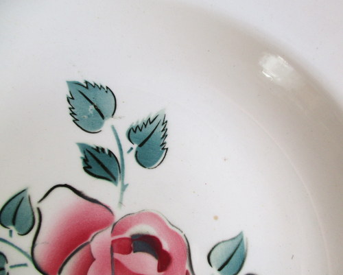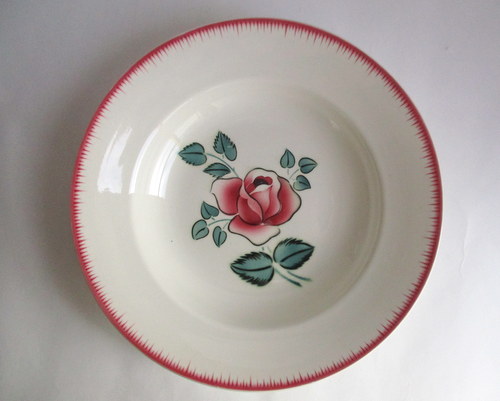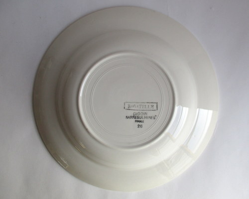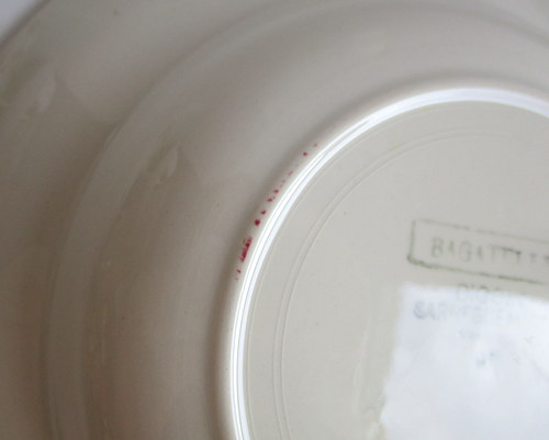 フランスDigoin Sarreguemines製スープ/サラダボウル。 バラがアクセントになった素敵なデザイン♪ 1950年代 直径:22.5cm 高さ:4.0cm 写真のとおり、貫入がみられ、また、ショップで紹介後増える可能性もあります事ご了承ください。この時代のアースンウェアとよばれる陶器について標準的なものであり、むしろ、この風合いが、味としてコレクターの方々には、好まれているため、あえてワケアリはしないこともご了承ください。 写真で説明している部分や最小限のスクラッチはありますが、ヒビ・カケはなく、あくまでも前述の陶器の性質と年代を考慮すると、全体的には、つややかで、雰囲気のある、良好なヴィンテージコンディションです。 ※比較的、すぐ気づくようなもののみ、説明でお知らせしています。古いものに珍しくないものとして、写真で説明していない、よく見たときにわかるような、小さな点や、釉薬のムラなどについては、ご了承ください。 当初在庫が2枚あるため、配送されるものは、こちらにお任せください。比較的、写真でお見せしている部分が少ないものを優先に選ばせていただきます。 Vintageメインページはこちら |