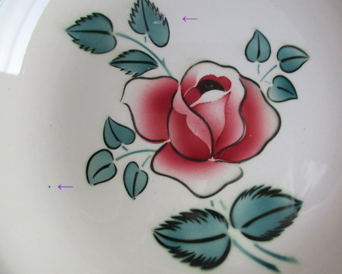 | 以下4枚の写真、色素の付着や釉薬のムラ、点など見られます。 | |