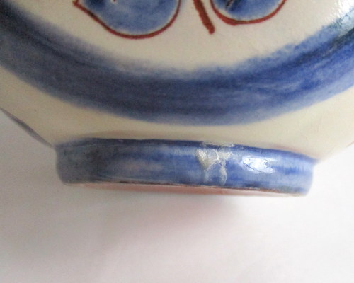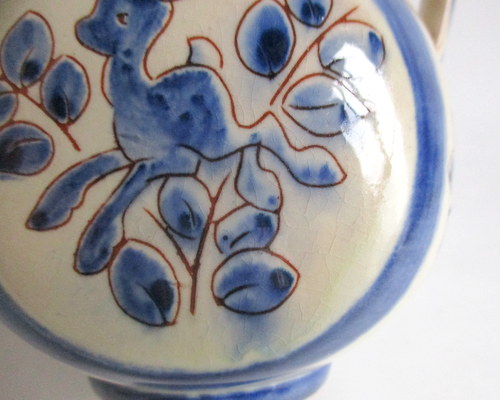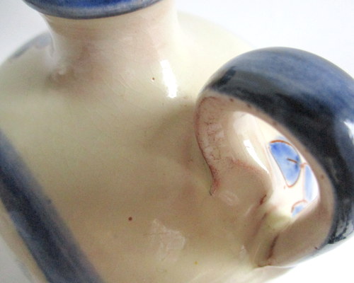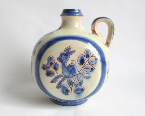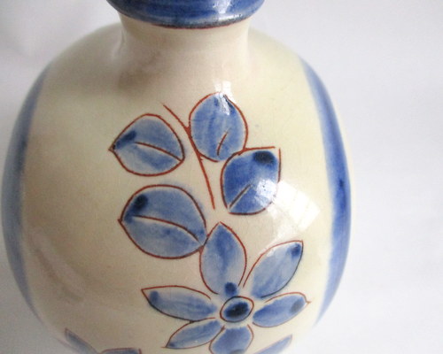 デンマークHumlebaek Keramik製Vase(花びん) あたたかみを感じるフォルムとバンビのデザインがとても可愛い花びんです! 1950-60年代 ※Humlebaek Keramikの情報がとぼしく、売り手の情報となりますが、ファミリービジネスとして運営されていたHumlebaek Keramikは、1970年代に閉窯しているとのことですので、それ以降であることはありません。 幅:約11.0cm 高さ:約12.0cm 奥行:約8cm 写真で説明している部分がありますが、この時代のもの、この素材に珍しいものではありません。ヒビ・カケ等なく、全体的には、良好なヴィンテージコンディションです。 ※比較的、すぐ気づくようなもののみ、説明でお知らせしています。古いものに珍しくないものとして、写真で説明していない、よく見たときにわかるような、小さな点や、釉薬のムラなどについては、ご了承ください。 Vintageメインページはこちら 以下すべての写真について、明るい所でよくみると貫入があります。製造時からなのか、経年によるものか判断がつきませんが、素材の性質上、避けられないもので、甚だしくめだつものではなく、味となっています。 |
