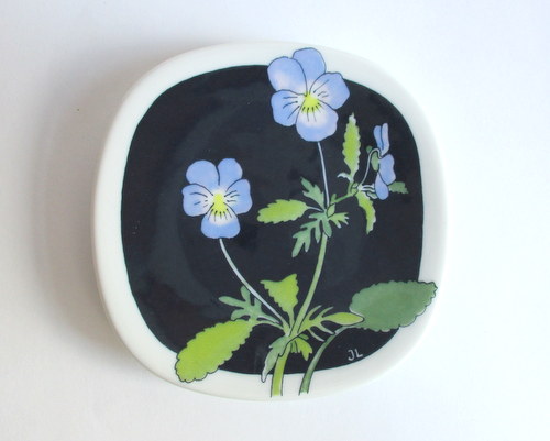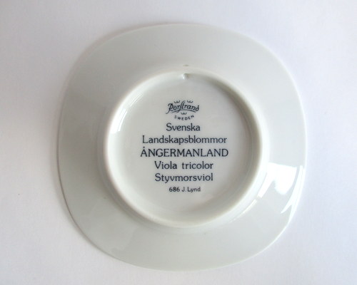 スウェーデンRörstrand、JackieLyndデザインのミニ絵皿。 Angermanland地方のお花、サンシキスミレです。 スウェーデンの行政区(地方)のお花をモチーフに、それぞれ、つくられました。 1974-90年 年代を特定でいないため、JackieLyndがRörstrandに在籍していた期間とさせていただいています。 約8.0x8.0cm 写真で説明している部分がありますが、ヒビ、カケ等なく、とても良好なヴィンテージコンディションです。 Vintageメインページはこちら 光にかざすと気づくような、針先のようにちっちゃい小さな凹みがあります。 |