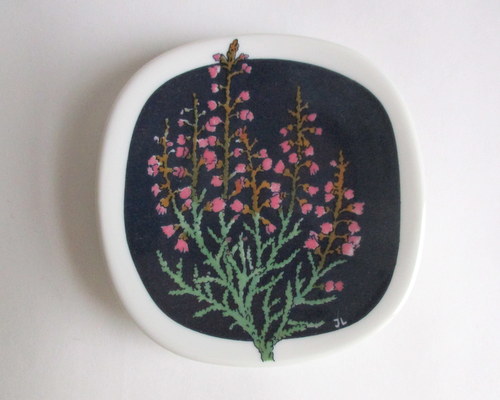 スウェーデンRörstrand、JackieLyndデザインのミニ絵皿。 Västergötland地方のお花、Ljungです。 スウェーデンの行政区(地方)のお花をモチーフに、それぞれ、つくられました。 1974-90年 年代を特定でいないため、JackieLyndがRörstrandに在籍していた期間とさせていただいています。 約8.0x8.0cm ヒビ、カケ等なく、とても良好なヴィンテージコンディションです。 Vintageメインページはこちら 針がねや紐などを通して、壁に掛けられるように穴が開いています。 |