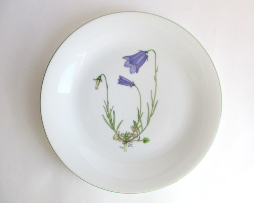 ノルウェーPorsgrund製、Mountain Flowerシリーズのケーキ皿。 高山植物がシンプルに可愛らしく描かれた素敵なシリーズです! お花は、DagnyTandeによるペイント、 Harebell-Campanula rotundifolia(イトシャジン)です。 1970年代 直径:16.8cm ヒビ・カケ等なく、保管上の最小限のスクラッチだけで、使用感もない、とても良好なヴィンテージコンディションです。 ※比較的、すぐ気づくようなもののみ、説明でお知らせしています。古いものに珍しくないものとして、写真で説明していない、よく見たときにわかるような、小さな点や、釉薬のムラなどについては、ご了承ください。 Vintageメインページはこちら |