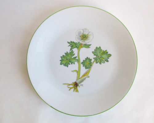 | ケーキ皿裏面に、ノルウェー語と英語による、描かれた高山植物の説明があります。 | |