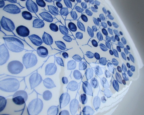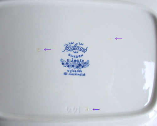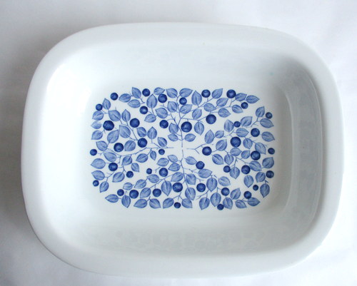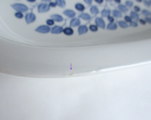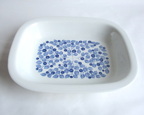スウェーデンRorstrand製サーヴィングディッシュ。 Marianne Westmanデザイン、Blabar(ブルーベリー)シリーズ♪落ち着いたブルーの並んだブルーベリーの実と葉っぱがかわいいです! あまり多くは出回らないアイテムです。 1960年代 約24.1x19.1cm 高さ:約5.0p 写真で説明している部分もありますが、珍しいものではありません。ヒビ・カケ等はなく、全体的には、良好なヴィンテージコンディションです。 ※比較的、すぐ気づくようなもののみ、説明でお知らせしています。古いものに珍しくないものとして、写真で説明していない、よく見たときにわかるような、小さな点や、釉薬のムラなどについては、ご了承ください。 Vintageメインページはこちら |