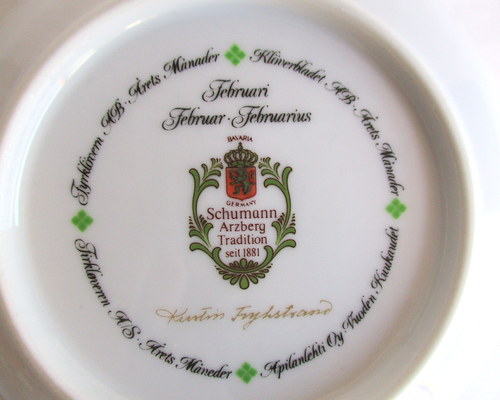 ドイツSchumann Arzberg製プレート。 フィンランド/スウェーデン人デザイナーKerstin Frykstrandによるデザイン、 コレクターズプレートの"Months of the Year"シリーズからの1枚です! これは、2月のプレートです♪ 1980年代 直径:約10.5cm ヒビ・カケ等なく、とても良好なヴィンテージコンディションです。 ※比較的、すぐ気づくようなもののみ、説明でお知らせしています。古いものに珍しくないものとして、写真で説明していない、よく見たときにわかるような、小さな点や、釉薬のムラなどについては、ご了承ください。 Vintageメインページはこちら |