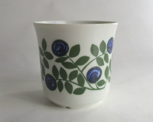 スウェーデンUpsalaEkeby/Gefle製カップ&ソーサー Berit Ternellデザイン、Blåbärシリーズです。森の中で実ったBlåbär(ブルーベリー)そのもののデザインとソーサーと併せ、さわやかなカラーが素敵です! 1960年代 カップ直径:約7.2cm カップ高さ:約7.0cm ソーサー直径:約13.9cm 写真で説明している部分がありますが、ヒビ、カケ等なく、同種のアイテムの平均的なコンディションを考慮すると、全体的には、良好なヴィンテージコンディションです。この素材の性質上、同様のコンディションのものが多いです。 ※比較的、すぐ気づくようなもののみ、説明でお知らせしています。古いものに珍しくないものとして、写真で説明していない、よく見たときにわかるような、小さな点や、釉薬のムラなどについては、ご了承ください。 Vintageメインページはこちら |