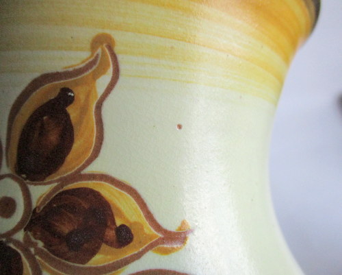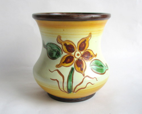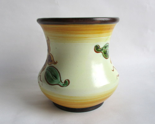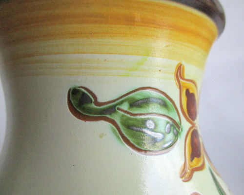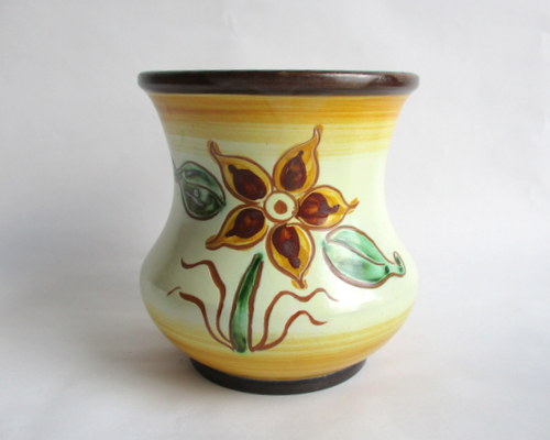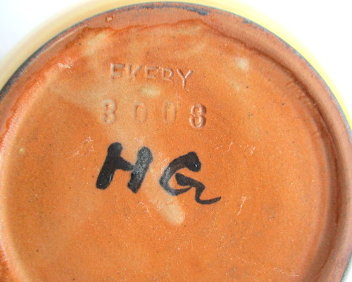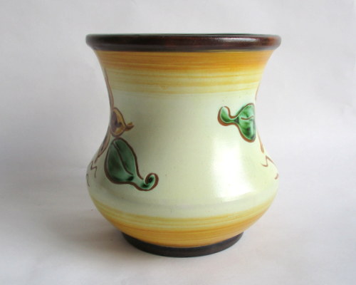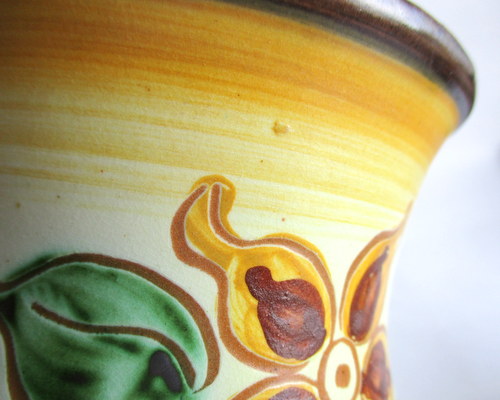 スウェーデンUpsalaEkeby製Vase(花びん) 大胆なお花のデザインと素朴なカラーが素敵な花びんです! HGと、底にサインがありますが、UpsalaEkebyは、古い時代のアーティストの情報整理がされておらず、作家名は、わかりません。 1922-38年 直径(口):約11.5cm 高さ:約12.8cm 写真で説明している部分がありますが、ヒビ・カケ等なく、年代も考慮した上で、全体的には、良好なヴィンテージコンディションです。 ※比較的、すぐ気づくようなもののみ、説明でお知らせしています。古いものに珍しくないものとして、写真で説明していない、よく見たときにわかるような、小さな点や、釉薬のムラなどについては、ご了承ください。 Vintageメインページはこちら |