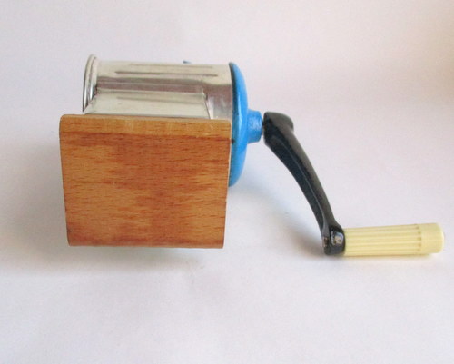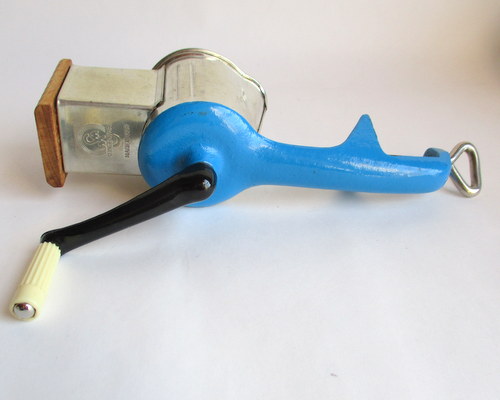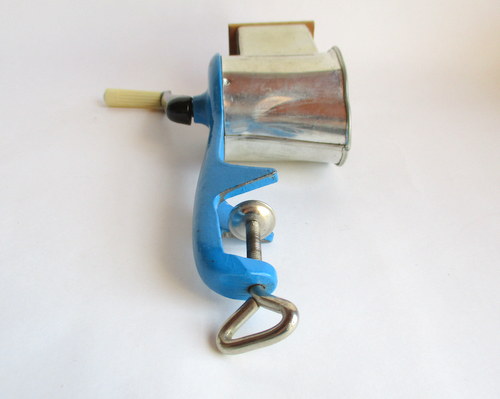 アーモンドミル/グラインダー ※旧東ドイツ製ですが、スウェーデンから輸入しました。 細かく挽いたアーモンドをいれてお菓子を作ることが多い、スウェーデンの家庭では、おなじみの道具です♪ テーブルなどに固定し、煙突のようなところにアーモンドなどのナッツ類をいれて、ハンドルをまわして、、、という仕組み。 インテリアとしても人気です! 旧東ドイツ・Klingenthal製 1980年代 高さ:約22.0cm 写真でお見せしているとおりの、実際に使われていた事がわかるコンディションです。ハンドルが良く回るので、ミルの機能も壊れていないようです。市場では、もっと古びたものも高めの価格で取り引きされることもあります。見た目の古びた感じは、ヴィンテージインテリアとしての味として見た上で、全体的には良好なヴィンテージコンディションです。 ※手入れなどせず、輸入時のまま配送させていただきます事、ご了承ください。 Vintageメインページはこちら |