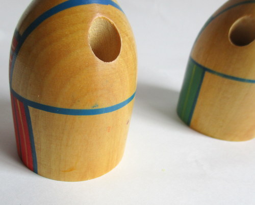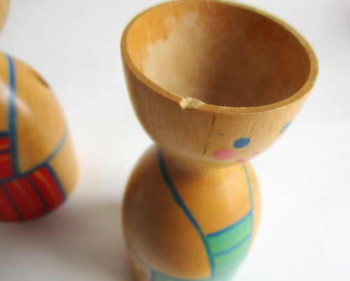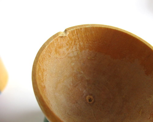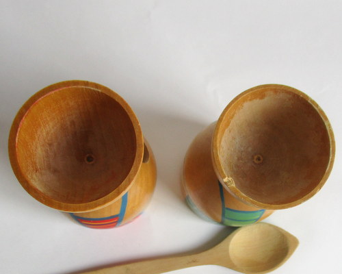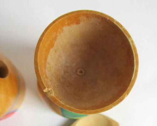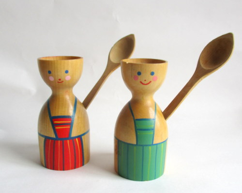 ハンドメイドの木製エッグカップセット(スプーン付) スプーンがアクセントになって、オブジェとしてもとてもかわいいです♪ スウェーデン 年代不明 直径(底):約5.0cm 高さ:約10.5cm スプーンの長さ:約13.8cm 写真で説明している部分がありますが、ヴィンテージのレトロな味となっており、全体的には、まずまずのヴィンテージコンディションです。 ※比較的、すぐ気づくようなもののみ、説明でお知らせしています。古いものに珍しくないものとして、写真で説明していない、よく見たときにわかるような、小さな汚れや傷などについては、ご了承ください。 vintage雑貨メインは、こちら 以下、ほとんどの写真について、つやだしの剥げや、ペイントの付着が見られます。 |
