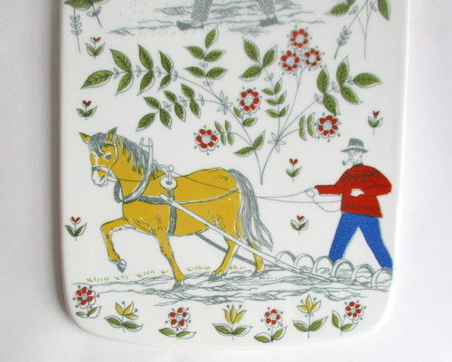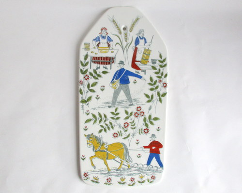 ノルウェーFiggjo製ウォールプレート ※カッティングボードとして知られていますが、陶器と言う性質上、また、実際の用途を鑑み、ウオールプレートとして紹介します。 1960−70年代 古き良き時代の生活の様子が、可愛らしく温かみのあるカラー&デザインで描かれたNorgeシリーズです♪ 約32.0x16.0p 写真で説明している部分がありますが、珍しいものではなく、ヒビ・カケ等ありません。光にかざした時にわかる程度の若干のスクラッチは、ありますが、全体的、きれいで、良好なヴィンテージコンディションです。 ※比較的、すぐ気づくようなもののみ、説明でお知らせしています。古いものに珍しくないものとして、写真で説明していない、よく見たときにわかるような、小さな点や、釉薬のムラなどについては、ご了承ください。 Vintageメインページはこちら |