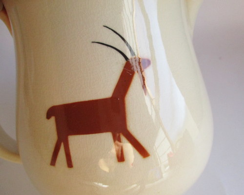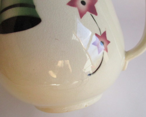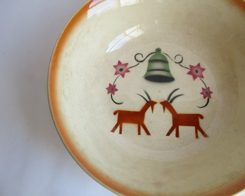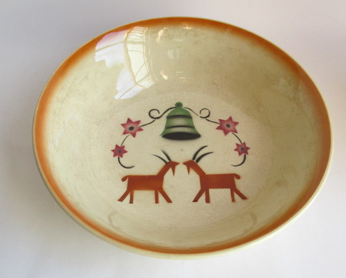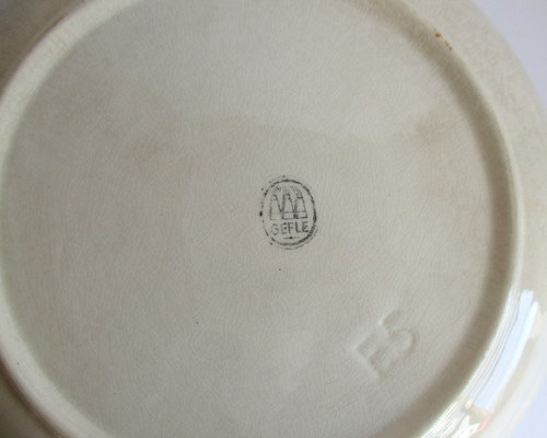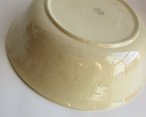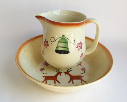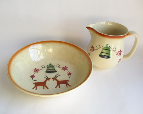 スウェーデンGEFLE製の洗面ボウル&ジャグ。(ワケアリ) 全面に貫入と変色がありますが、それがアンティーク好きにはたまらない味となっており、また、とても温かみのあるクリスマスのデザインがとインテリアとしてとても素敵です! 1925-29年 洗面ボウル 直径:約22.7p 高さ:約6.0cm ジャグ 直径(注ぎ口含む):約11.8cm 幅(取っ手含む):約13.5p 高さ:約13.0cm 貫入が全体的にあり、ボウルにはヒビが入っています。このことが価格と関係しており、セット販売ですが、価格は、ほぼジャグの分となります。 カケはなく、全体的には、まずまずの味のあるヴィンテージコンディションです。 ※比較的、すぐ気づくようなもののみ、説明でお知らせしています。古いものに珍しくないものとして、写真で説明していない、よく見たときにわかるような、小さな点や、釉薬のムラなどについては、ご了承ください。 Vintageメインページはこちら 以下、すべての写真について、全面に貫入、変色がみられます。 |