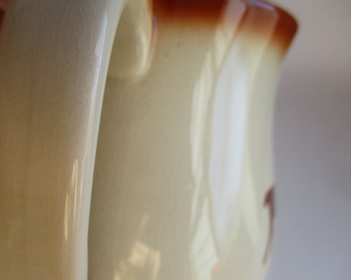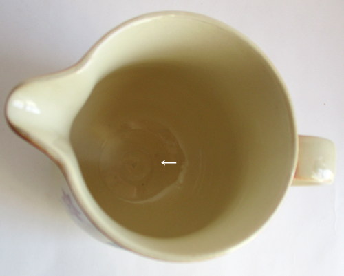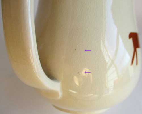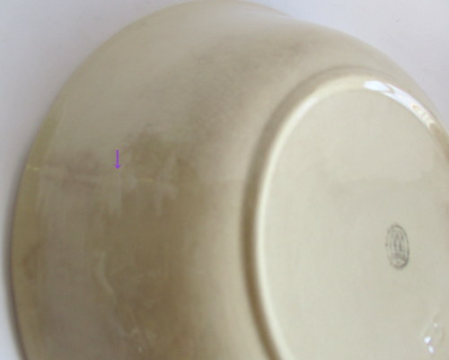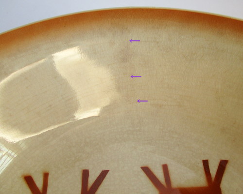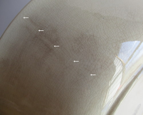 | 以下3枚の写真、同じ部分をさしていますが、貫入で見えにくいものの、ヒビがはいっています。 | |