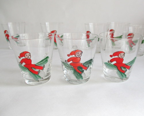 ハンドブロウン(手吹き)&ペイントのmulledグラス (持ち手つき) スウェーデンで、クリスマスに飲まれる、 mulled drink という温かい飲み物用の小さなグラスです♪ mulled drinkは、赤ワインもしくは、アルコールがダメな場合、ブラックカラント(カシス)のジュースに、いくつかのスパイスとレーズンをいれて温めた、ホットワインのような飲み物で、アーモンドやレーズンを食べながら飲むのが定番だそう。 スウェーデン 1950年代・メーカー不明 直径(口):約5.3cm 高さ:約6.2p 写真で説明している部分がありますが、全体的には、とても良好なヴィンテージコンディションです。 ※比較的、すぐ気づくようなもののみ、説明でお知らせしています。古いガラスに珍しくないものとして、よく見たときにわかるような気泡や、細かいキズなどは、ご了承ください。 ※在庫が当初11個あり、配送されるものは、こちらにお任せください。店主の感覚で、比較的、ペイントの感じがいいものを優先に選ばせていただきます。 Vintageメインページはこちら |