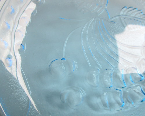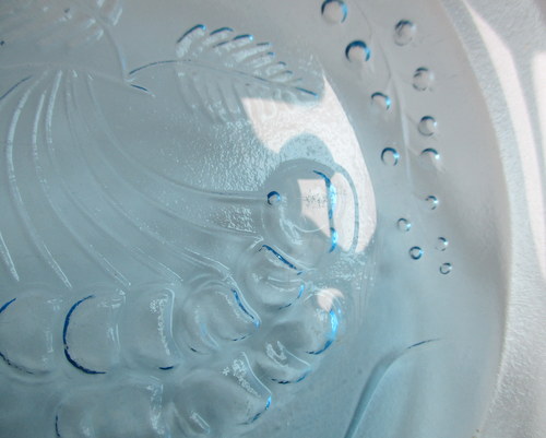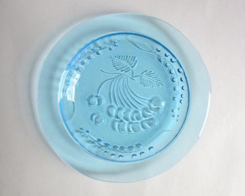 フィンランドHumppilan lasi製、さくらんぼの小さなプレート. 少しいびつなフォルムとたくさんのサクランボのデザインが、本当に素敵な、 フィンランドを代表する女性ガラスデザイナーNanny Stillによる、<Tutti Frutti >シリーズ。 KirsiなどRiihimäen lasiのデザイナーとして良く知られているNannyStillですが、 ほかのメーカーであるHumppilan lasiでデザインを手がけた時期の唯一のものであることもあり、フィンランドでも、なかなか見かけるものではないそうです。 1970年代 直径:約17.0cm 高さ:約2.0㎝ 写真で説明している部分がありますが、全体的に見たときには、きれいで、良好なヴィンテージコンディションです。 ※写真で写しきれない、ガラスであるからこそ、気づくようなものがあります。ご了承の上、ご注文いただければ幸いです。 ※比較的、すぐ気づくようなもののみ、説明でお知らせしています。古いガラスに珍しくないものとして、写真で説明していない、よく見たときにわかるような気泡やキズは、古いガラスのものとしてご了承ください。 Vintageメインページはこちら 写真に写しにくく、申し訳ありませんが、光にかざすと、スクラッチと、上の段の左から2個めのサクランボのすぐ上のあたりに、5mmぐらいの爪を立ててなでるとひっかかりを感じる浅いキズがみられます。 また、表面の何カ所かと裏面底まわりに細かいスクラッとがクモリのようになっている部分があります。 |