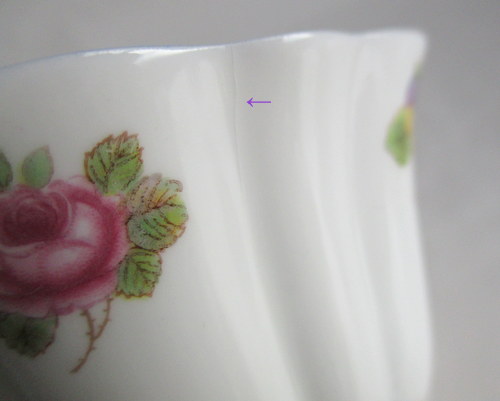 イギリスShelley 製、Rose/Pansy/Forget me notのカップ&ソーサー(ワケアリ) 希少なstratfordシェイプです! 残念ながら到着時にヒビがみつかりましたが、それでも価値のあるものですので、紹介させていただきます。 1960−62年 カップ直径:約9.8cm カップ高さ:約5.3cm ソーサー直径:約14.2cm カップのヒビが、ワケアリとして価格と関係しています。 写真で説明している他の部分は、この時代に珍しいものではなく、全体的に見た時は、目立つものではありません。カケはなく保管上の最小限のスクラッチだけで、使用感もありません。アイテムの希少性と価値を考慮し、全体的には、まずまずのヴィンテージコンディションです。 ※比較的、すぐ気づくようなもののみ、説明でお知らせしています。古いものに珍しくないものとして、写真で説明していない、よく見たときにわかるような、小さな点や、釉薬のムラなどについては、ご了承ください。 Vintageメインページはこちら |
