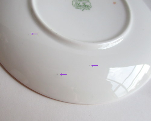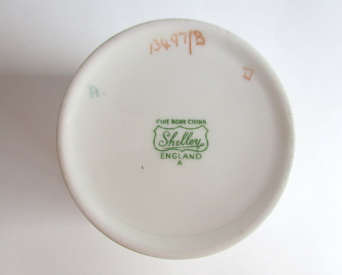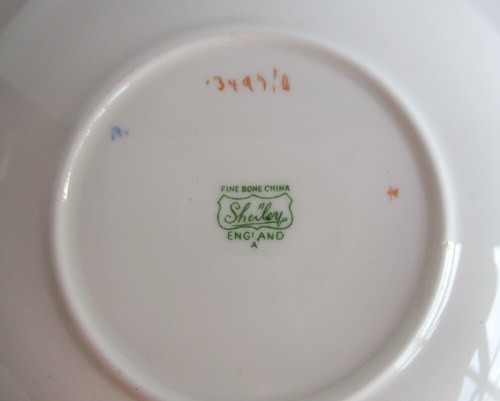 | <参考> shelleyは、1960年から、バックスタンプにAという文字を付けたものを製造しはじめ、次にBを1962、3年頃から、窯を閉じる1966年まで使われたようです。すべてのパターンに使われたかどうかは不明です。 |