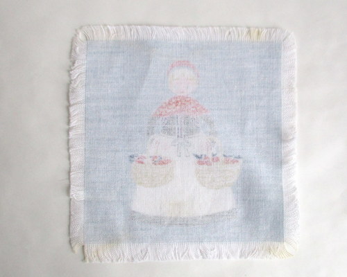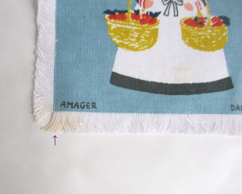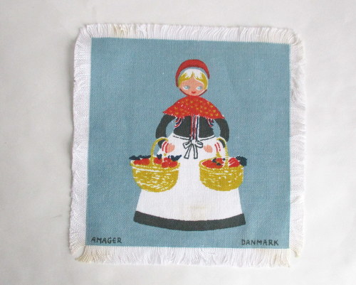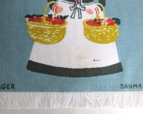 ハンドプリントのミニクロス 数多くのかわいらしい作品を創り出しているJangaardによるデザイン。同時にアップしているシリーズをみると、左下にプリントされている文字が、デンマークの町や村の名前のようですが、<地方>より、狭い範囲なので、その町や村の民族衣装なのかどうかは、不明ですが、とてもかいわいいです!味のあるハンドプリントです♪ 1960年代/デンマーク 素材:リネンorコットン ※売り手により、どちらかの説明となっているため、両方の可能性として、お知らせします。混紡かもしれません。 約14.0×14.5cm フリンジに、写真で説明しているシミがあります。未使用のもので、全体的には、良好なヴィンテージコンディションです! Vintageテキスタイルメインは、こちら 以下の写真、矢印で示しているあたりに、少し濃い目のものを含め、うっすらシミが感じられます。 |