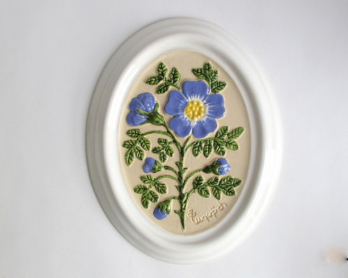 陶器の壁掛け 北欧雑貨の中でも人気の高い陶板。 立体感のある、ハンドメイドの壁掛けは、陶器ならではの存在感で、壁に飾った時に、温かみのあるポイントとなり、お部屋全体の雰囲気を変えてくれます! スウェーデン・Gabriel製 1970年代前後 ※年代に関する情報が乏しく、推定となります。 約14.0x17.5cm 写真で説明している部分がありますが、ヒビ・カケ等なく、とても良好なヴィンテージコンディションです。 ※比較的、すぐ気づくようなもののみ、説明でお知らせしています。古いものに珍しくないものとして、写真で説明していない、よく見たときにわかるような、ものについては、ご了承ください。 Vintageメインページはこちら |